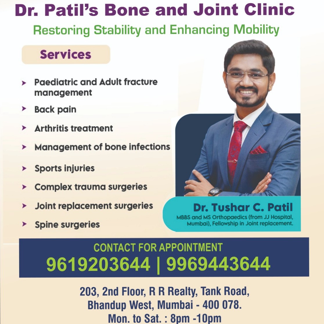 Recognized as one of the best knee replacement surgeon in Mumbai, Dr. Tushar C. Patil specializes in the advanced minimally invasive subvastus approach. Unlike traditional methods that cut through the quadriceps, this muscle-sparing technique works beneath the muscle, preserving the leg's natural strength and reducing post-operative pain. By combining this with posterior cruciate retaining knee replacement, Dr. Patil ensures more natural knee kinematics and superior proprioception, allowing the joint to function as nature intended. This unique combination facilitates immediate rehabilitation, with most patients achieving faster mobility and a quicker return to their daily lives without the long recovery times of conventional surgery. Key Highlights of Dr. Patil's Approach * Subvastus Approach: Preserves the quadriceps muscle, leading to less trauma and a smaller scar. * PCL Retention: Keeps the posterior cruciate ligament intact for a "natural feel" while walking or climbing stairs. * Rapid Recovery: Minimal tissue damage allows for earlier weight-bearing and physical therapy.